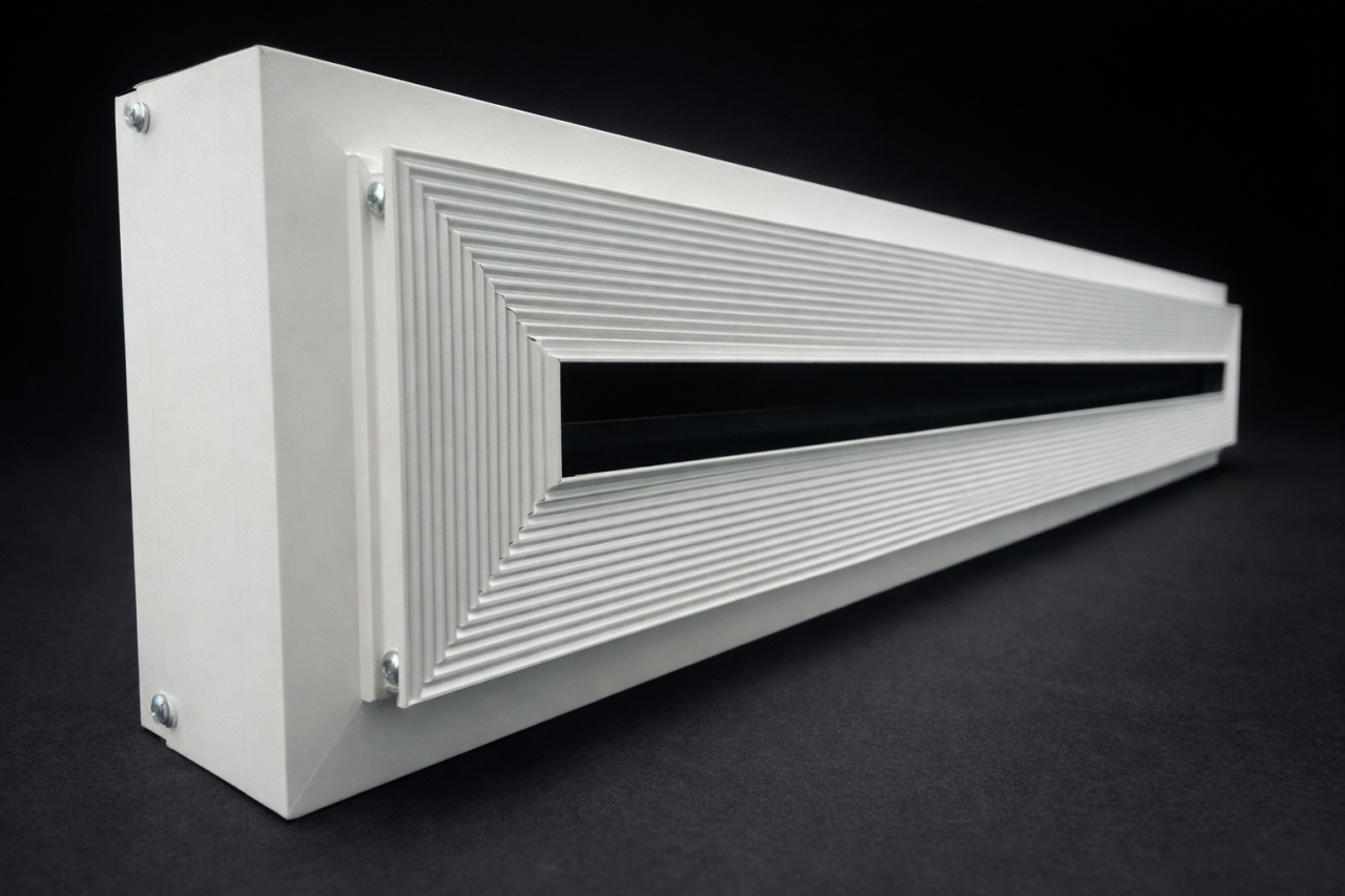 Линейный щелевой диффузор TL предназначен для скрытой установки в систему вентиляции и кондиционирования в качестве конечного декоративного элемента инженерной системы в жилых, торговых, и офисных помещениях. Диффузоры встраиваются в стены или потолок, изготавливаемые из гипсокартона и металлического каркаса.