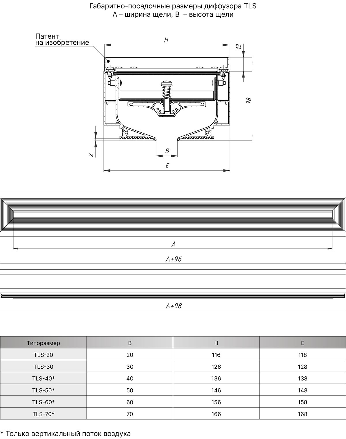 - Корректное распределение воздушного потока за счет сохранения живого сечения диффузора при любом размере щели и любом положении дефлектора.